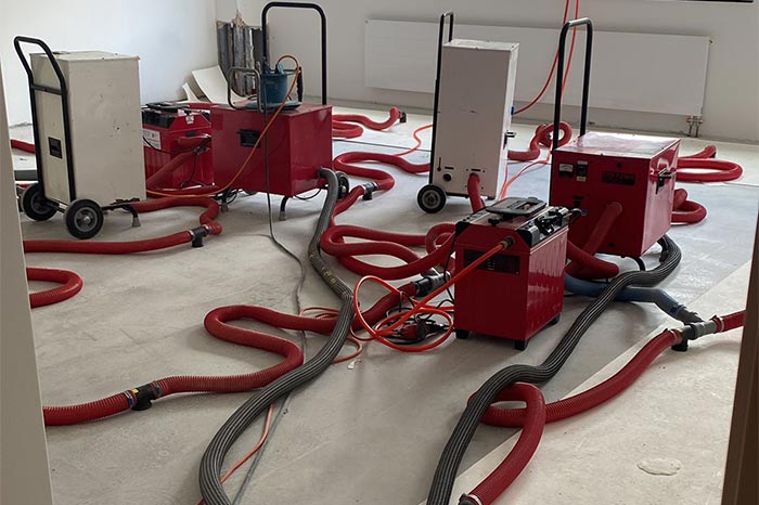 Bei der Wasserschadensanierung minimieren wir mithilfe der verschiedensten Arten der technischen Trocknung die Gefahr substanzieller Schäden an betroffenen Baustoffen.