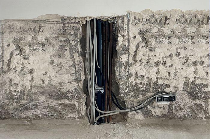 Wir führen den Rückbau z.B. nach einem Wasserschaden bis in den Rohbauzustand durch.