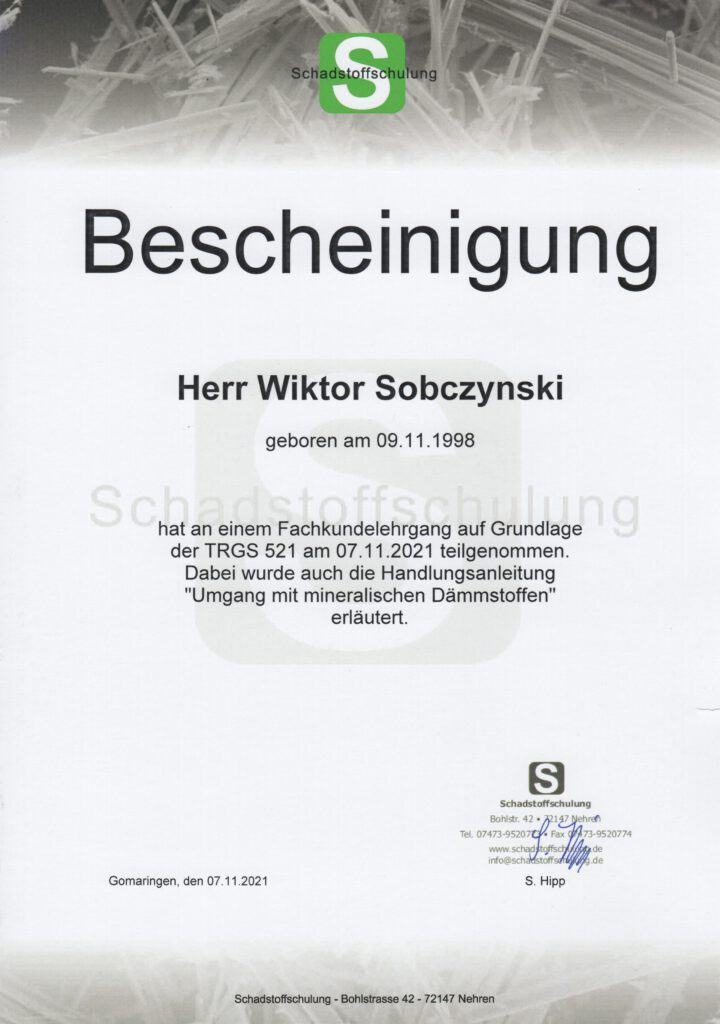 Unsere Mitarbeiter verfügen über 20 Jahre Berufserfahrung im Bereich der Kernbohrungen und Betonsägen. Mit modernster Technologie können wir fast alle Wünsche im Bereich der Betonbearbeitung umsetzen. Des Weiteren führen wir die fachgerechte Schadstoffsanierung entsprechend der Technischen Regeln für Gefahrenstoffe TRGS 519 und TRGS 521 durch.